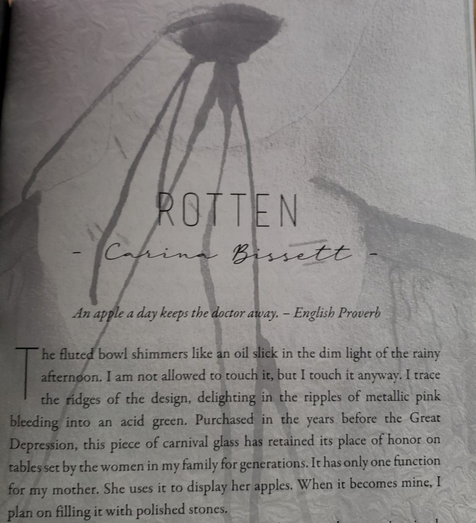 One of the first stories I wrote as Carina Bissett was “Rotten,” a modern take on “Snow White.” In it’s polished form, it was good enough to earn an acceptance to the M.F.A. program in Creative Writing (Popular Fiction) at Stonecoast (University of Southern Maine). Yet, it took three years from this story’s first rejection to an acceptance, and it took another sixteen months after that before it ended up in print. Over the course of the three years I submitted “Rotten,” it was rejected fourteen times. I wondered if it would ever find a home.